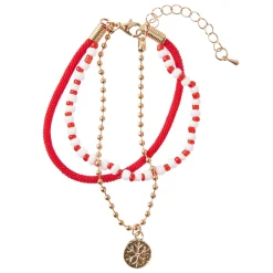 NANU-NANA Weihnachtsoutfit|Adventskalender*Armband Weihnachten, Schneeflocke, Rot/gold