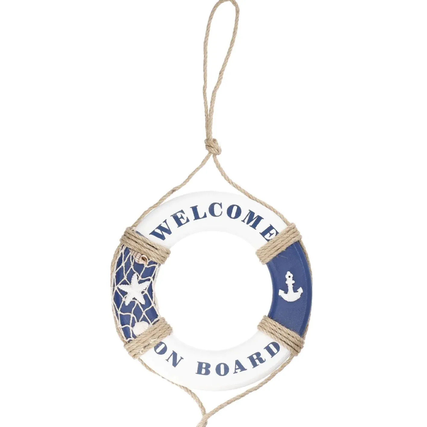 Jeder braucht mal eine Rettung. Dieser Rettungsring mit Aufschrift ‚Welcome on board‘ macht deine Dekoration zu einem maritimen Highlight. Zum Hängen, Hinlegen oder Anlehnen.