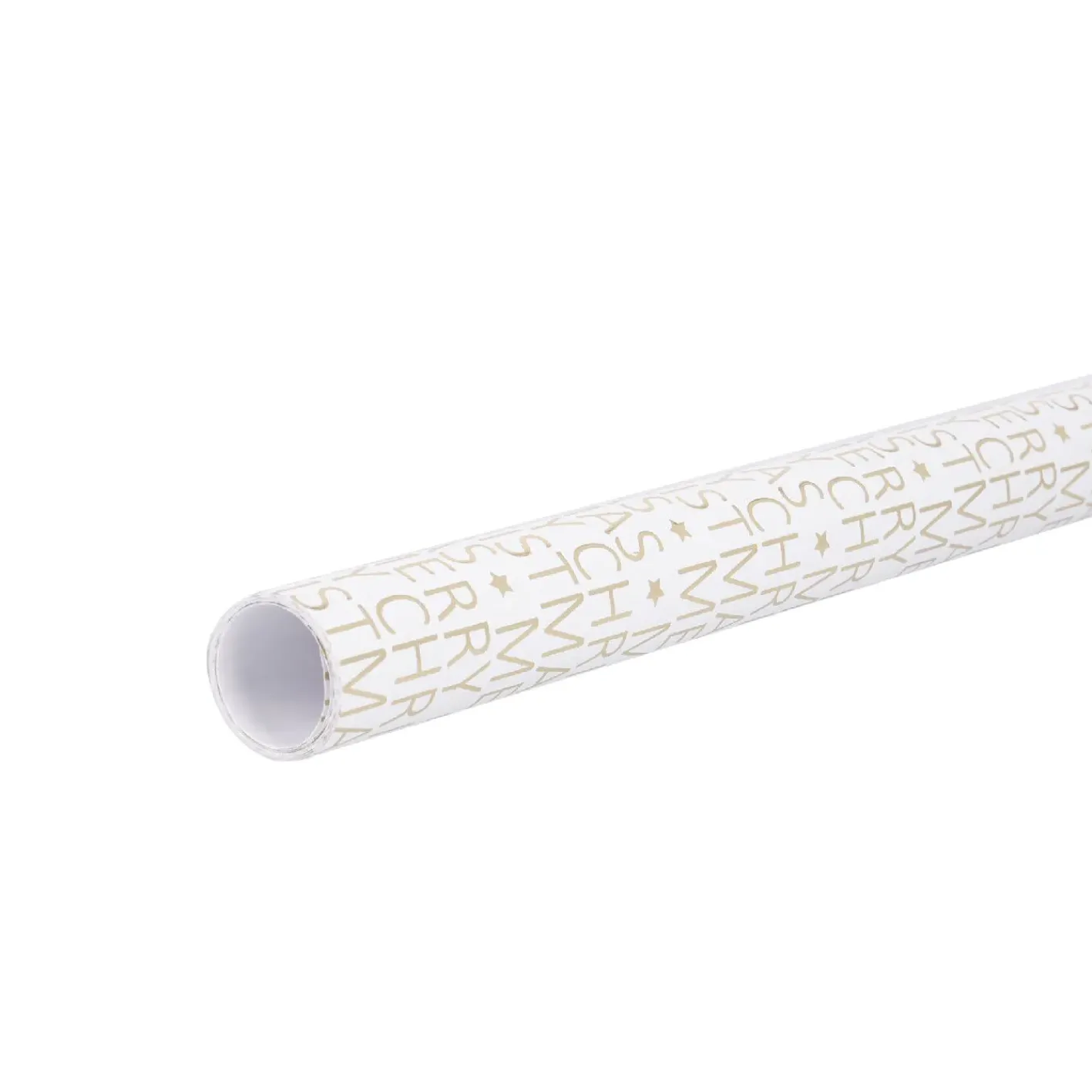 Mache deine Geschenke zu etwas Besonderem mit unserem cremefarbenen Geschenkpapier mit Goldprägung. Auf 2 Metern findest du die festliche Aufschrift ‚Merry Christmas‘. Genau das Richtige, um deine Weihnachtsgeschenke stilvoll zu verpacken.
