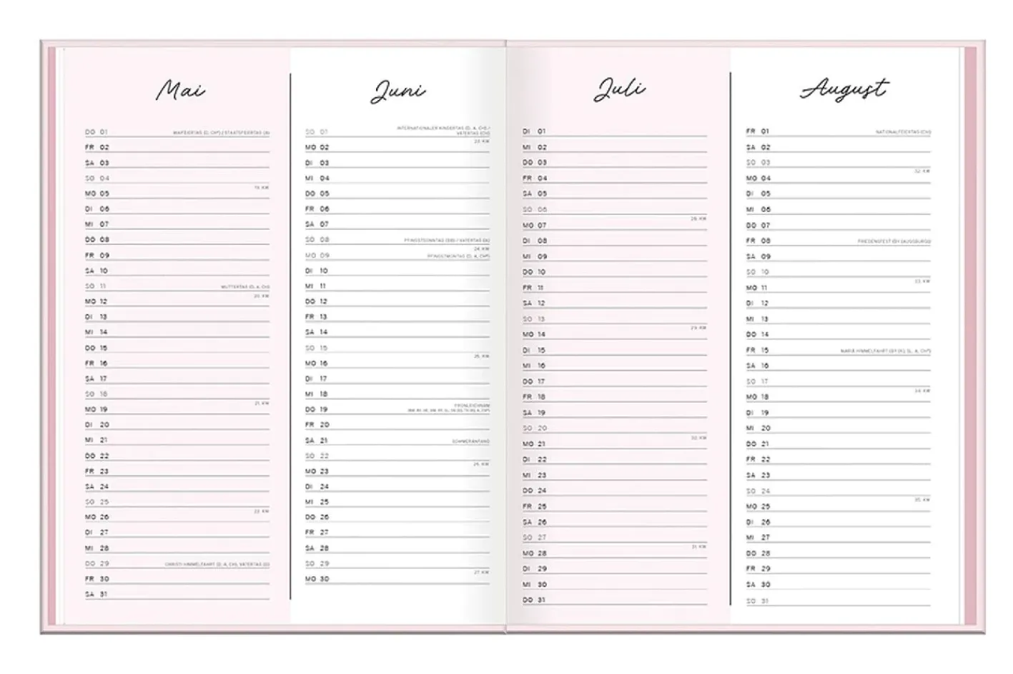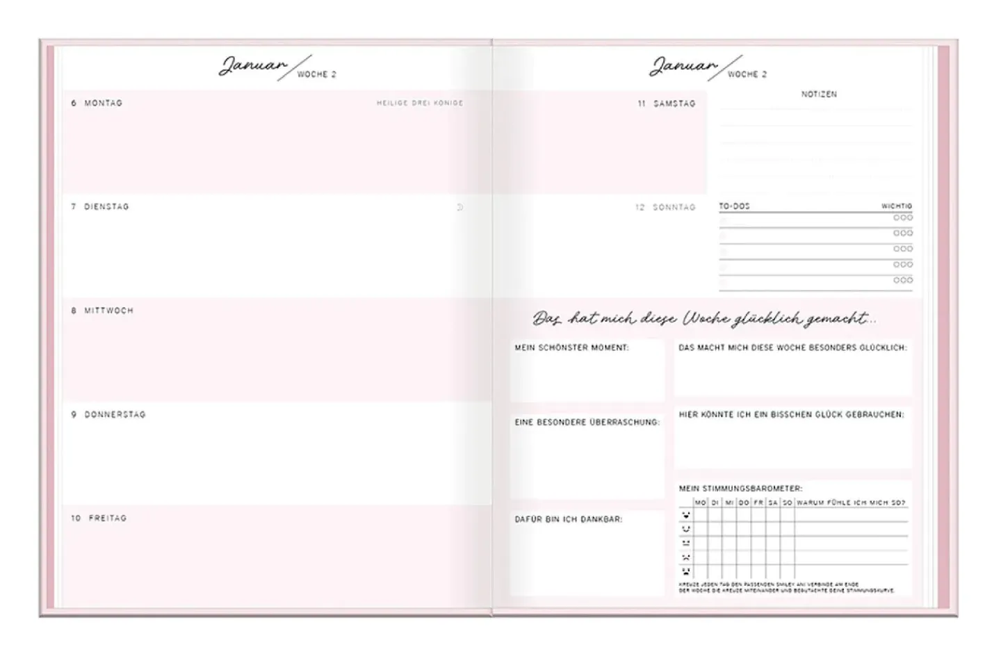 Achtsam durch das Jahr und jeden Monat eine neue Challenge? Gewohnheiten tracken oder Gefühlslagen beleuchten? Mit dem Lady-Terminplaner lassen sich Woche für Woche kleine und große Momente dokumentieren.Format: 18 x 23,5 cm148 Seiten + 2 StickerbogenFadenheftungviel Platz für persönliche EinträgeSoftcover im LederoptikGold Veredelung auf dem Coverjeden Monat eine Aktionsseite zum AusfüllenFeiertage (für D + A + CH)Schulferien (für D + A)MondphasenJahresübersichten 2025 & 2026FSC® C130847