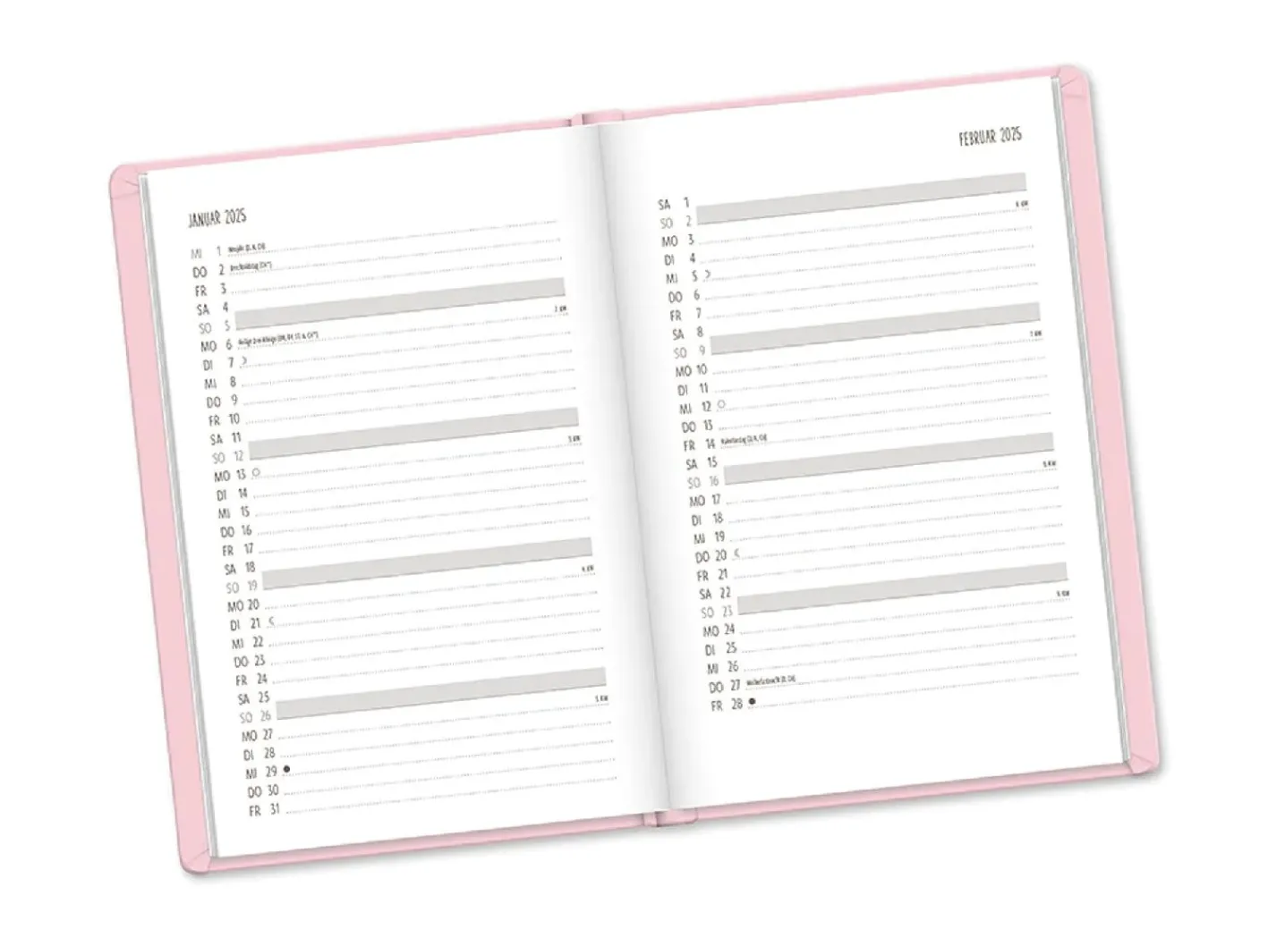Dieser schöne Kalender im Lederlook fühlt sich einfach toll an und ist auch noch strapazierfähig. Also egal, was das Leben für dich bereithält, hier ist Platz für Alles!
