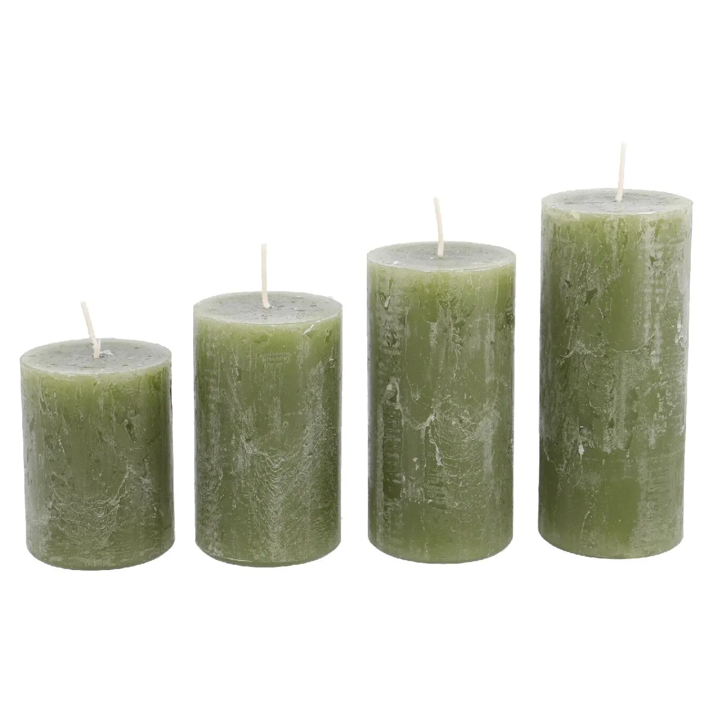 NANU-NANA Kerzen & Kerzenständer|Weihnachtskerzen*4er Set Kerze Rustik, Gestuft, Olivgrün