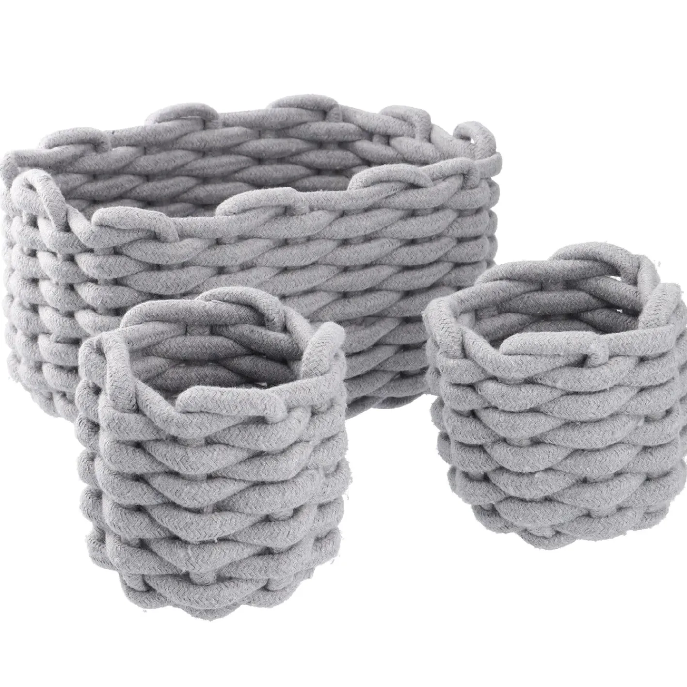 NANU-NANA Organisation*3er Set Deko-Korb Strick, Hellgrau