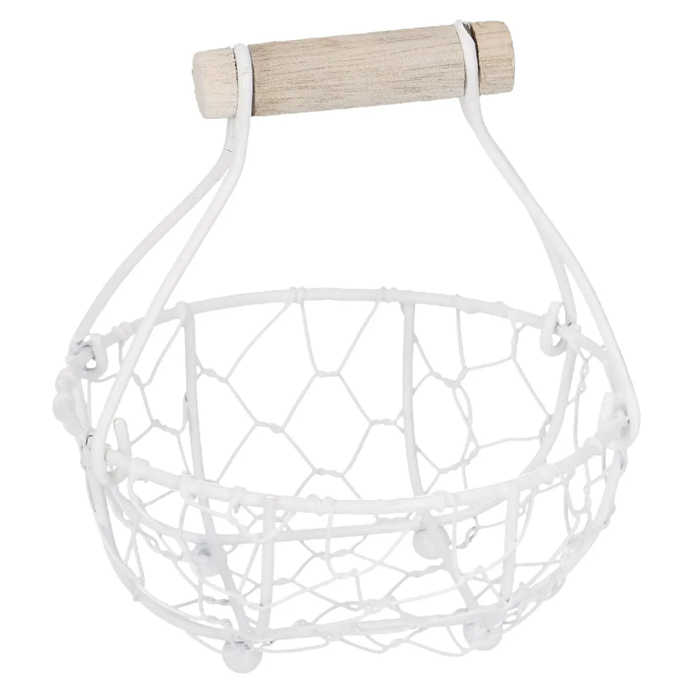 Runder Dekokorb aus Metall mit Holzgriff. Ein tolles Deko-Element für dein Zuhause.