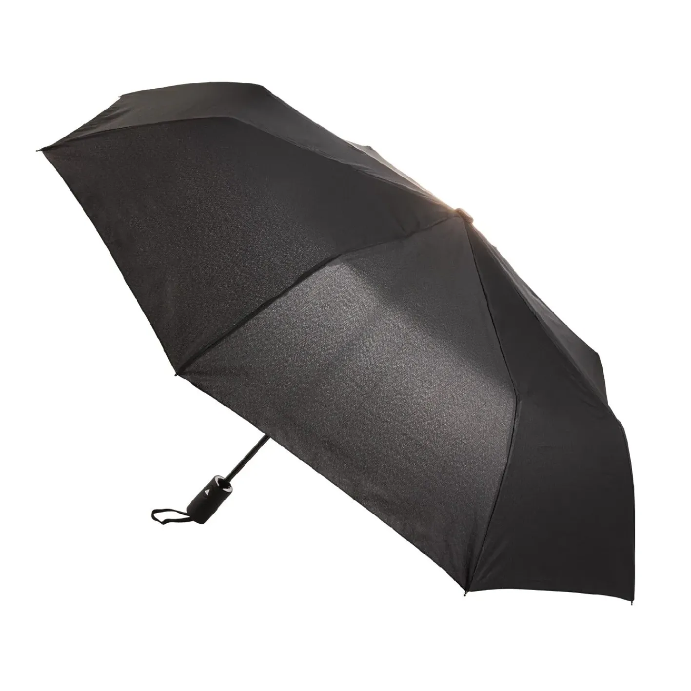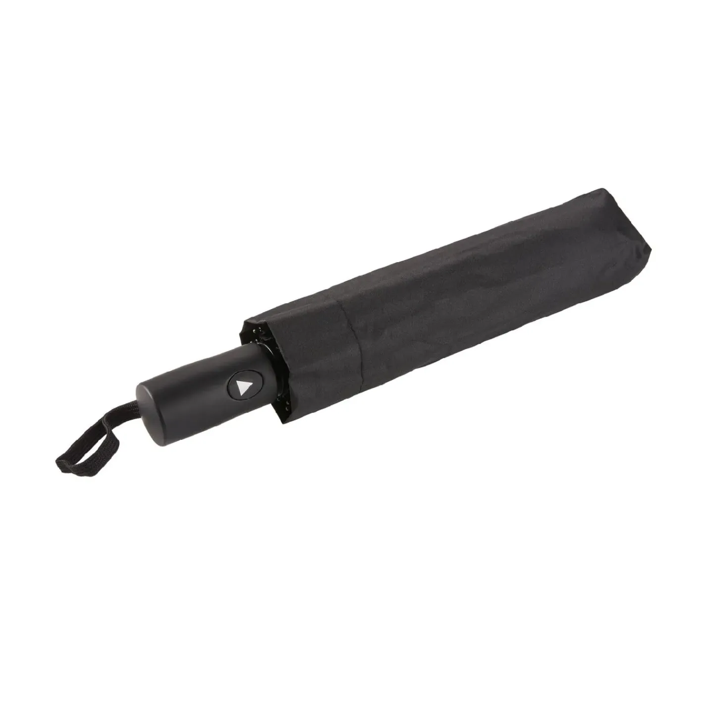 Maße und Gewicht beziehen sich auf den eingeklappten Regenschirm. Er verfügt über einen Automatik-Button.