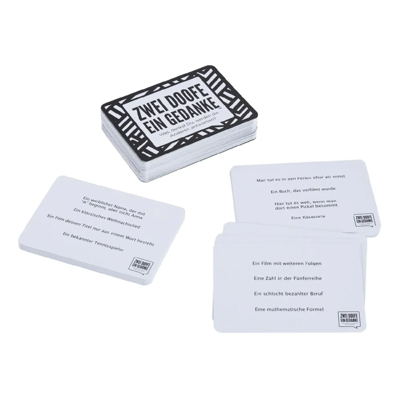 ZWEI DOOFE EIN GEDANKE.. ist ein verrücktes, temporeiches und super lustiges Spiel mit 440 Themen. Ein ideales Geschenk und Mitbringsel für jede Gelegenheit, lustige Partys und gesellige Abende!