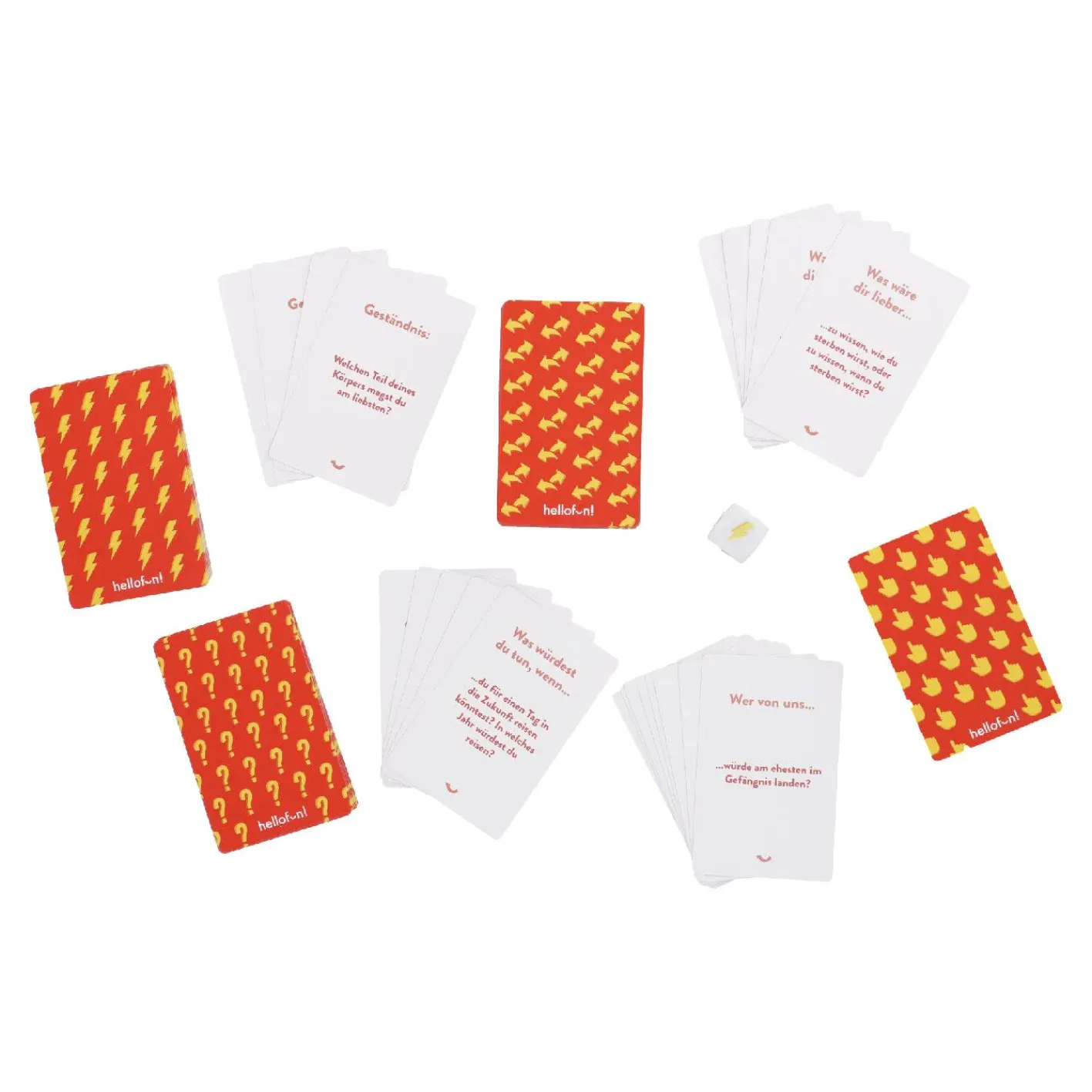 In deinen Händen befindet sich Boah, ist jetzt auch egal – das Spiel mit Fragen und Geständnissen, die ehrliche Antworten erfordern – ohne Tabus und Hintertürchen. Das perfekte Spiel für pikante Momente mit Freunden, über die du schon lange mehr erfahren wolltest.