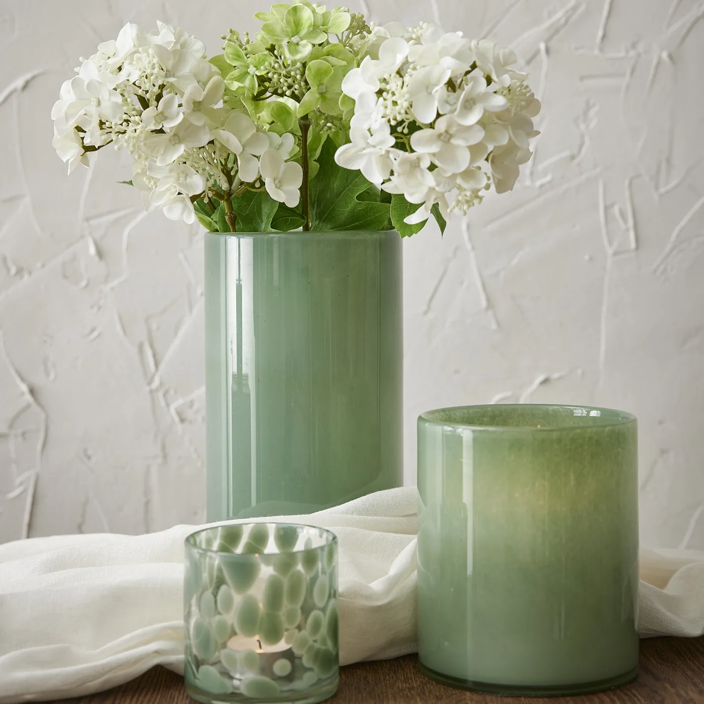 NANU-NANA Tischdeko|Vasen & Kunstblumen*Glas-Vase Zylinder/Opal, Grün, 12 X 14 Cm