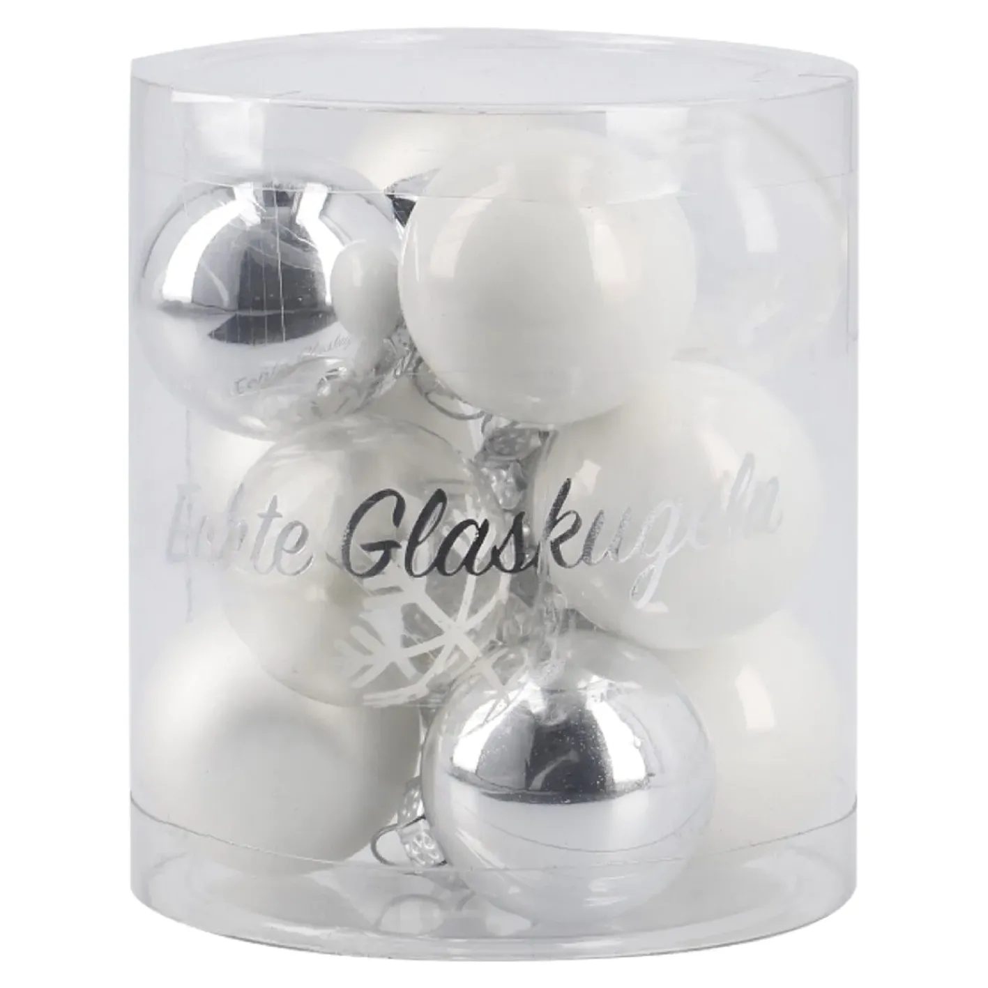NANU-NANA Weihnachtsbaumschmuck|Adventskränze & Zubehör*12er Set Glaskugeln 2,5 Cm, Weiß/silber/frost