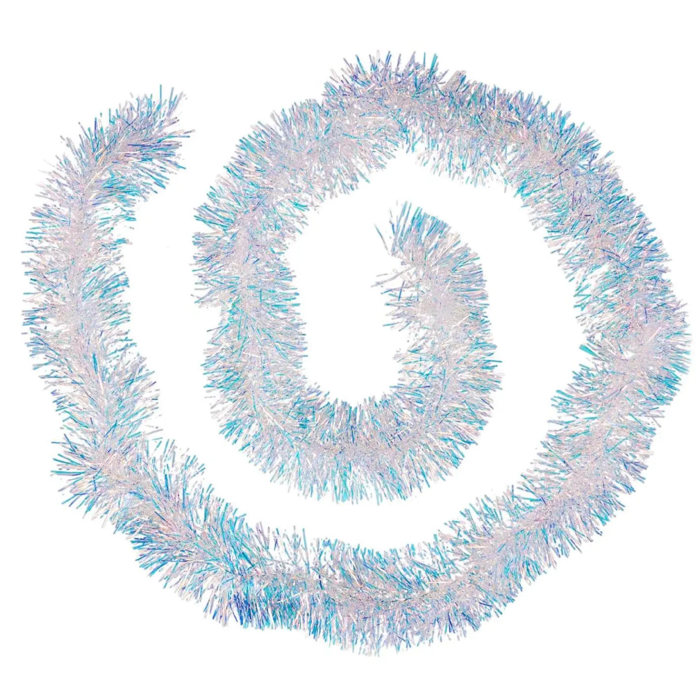 Weihnachtlich dekorieren war noch nie so einfach! Dekoriere Türrahmen, Lampen und Co. mit dieser irisierenden Tinsel-Girlande.