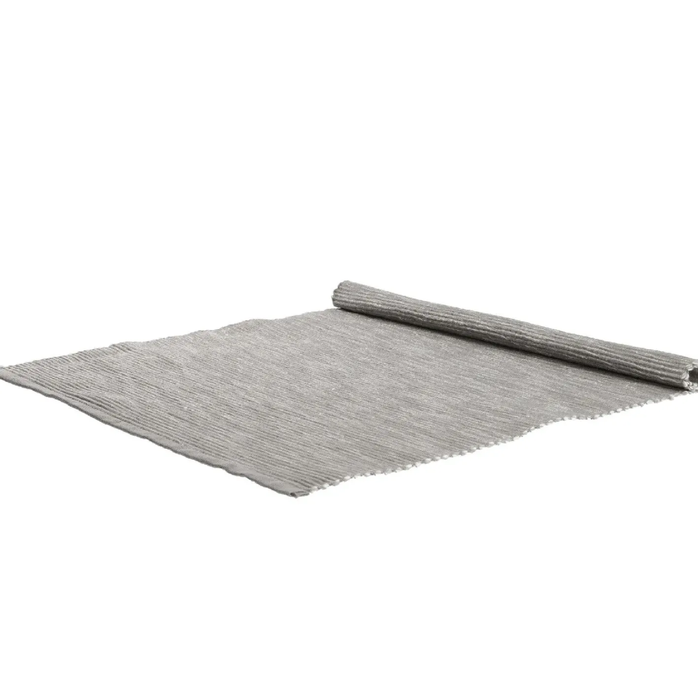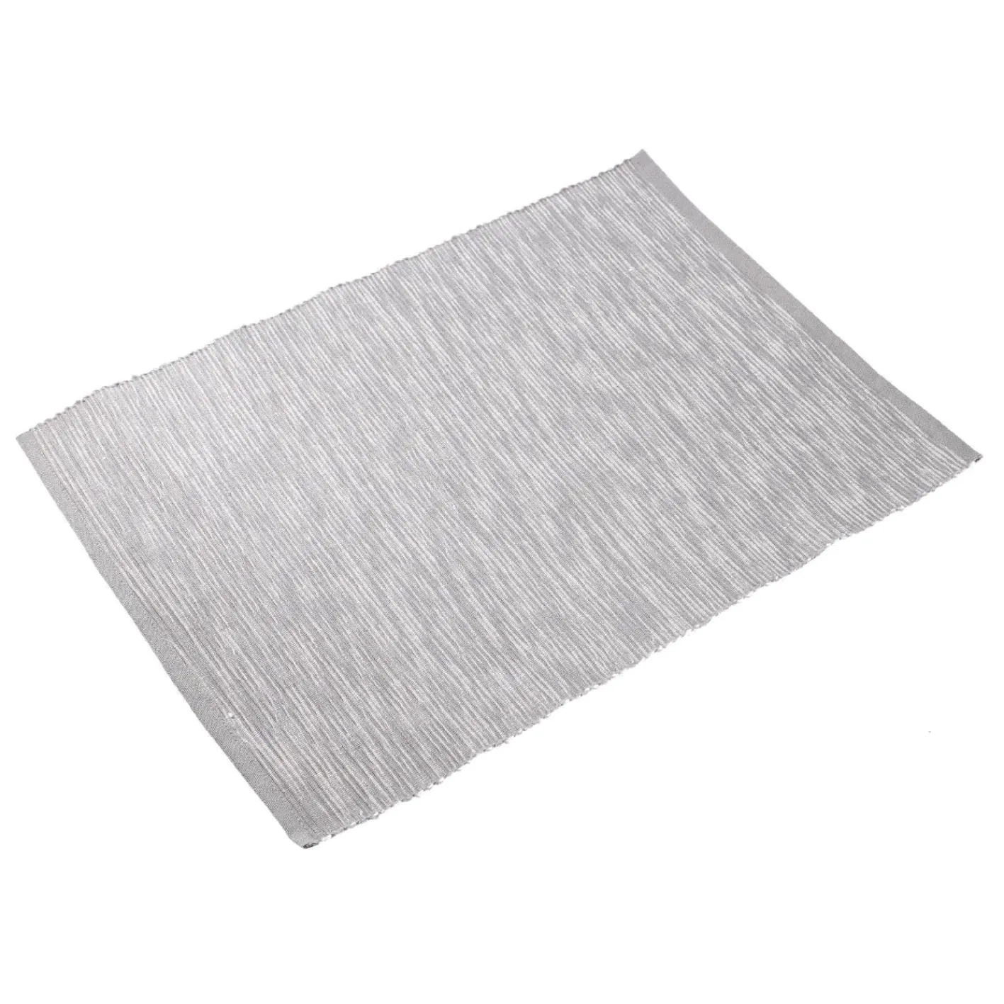 Ein Tischlein, hell und freundlich gedeckt: Dekoratives und praktisches Tischset aus Baumwolle in sanftem Hellgrau und Weiß.