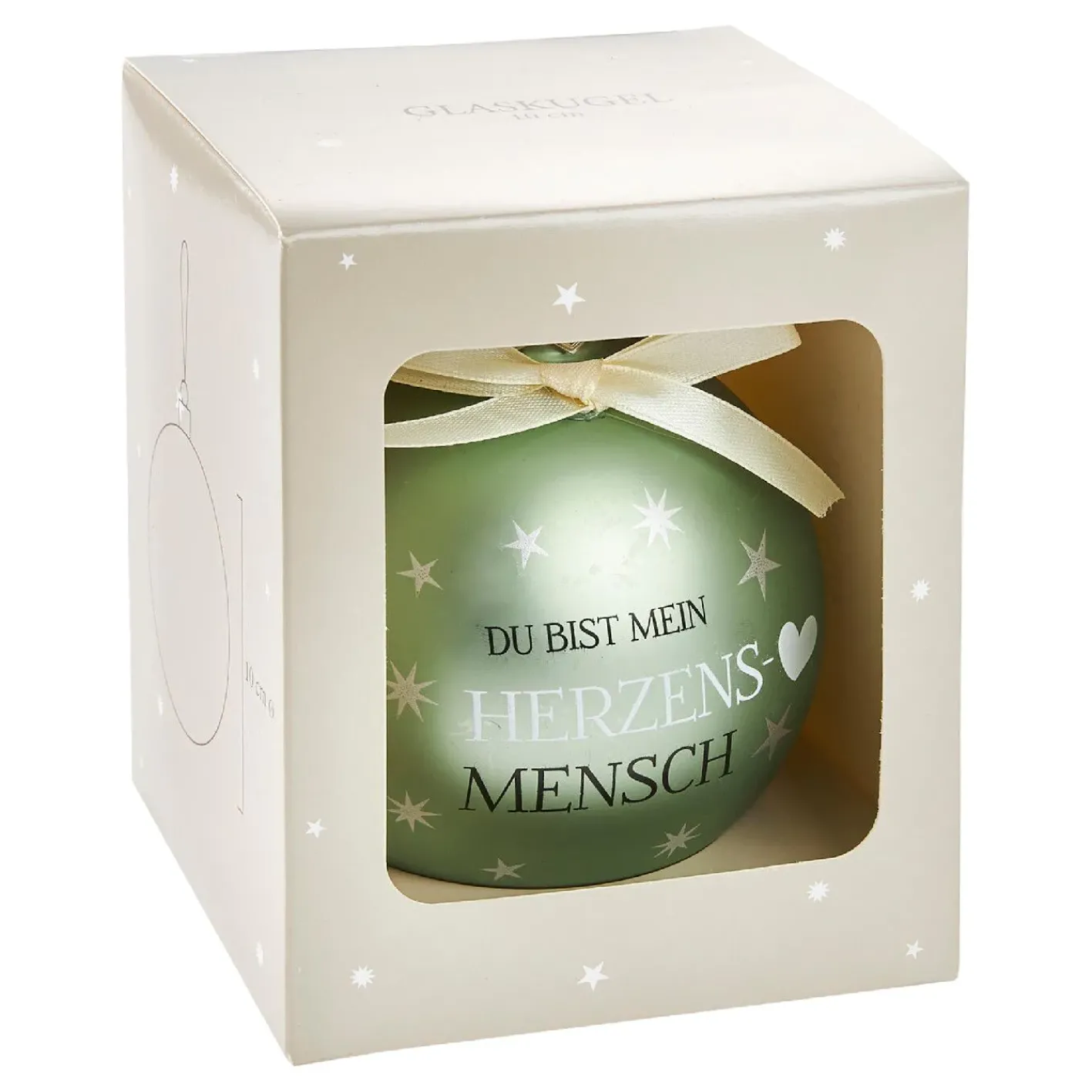 NANU-NANA Weihnachtsgeschenke|Weihnachtsbaumschmuck*Glaskugel Spruch, Herzensmensch/mint/matt, 10 Cm