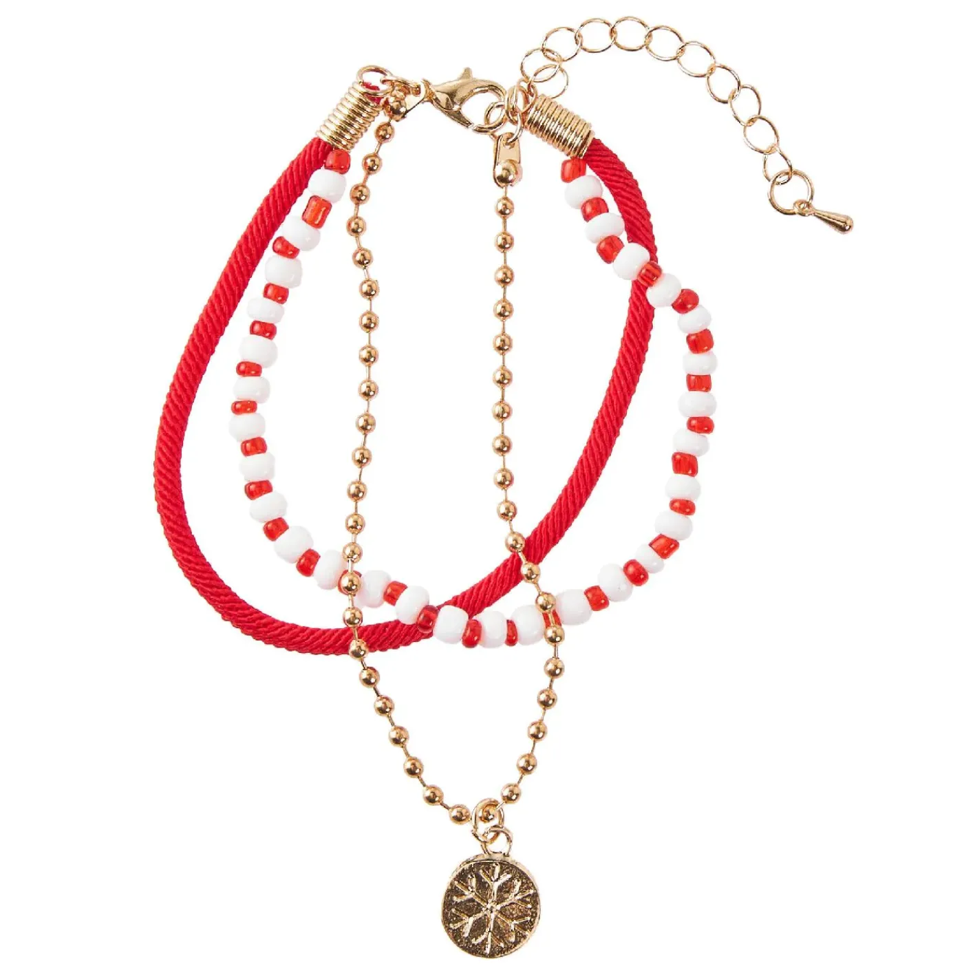 NANU-NANA Weihnachtsoutfit|Adventskalender*Armband Weihnachten, Schneeflocke, Rot/gold
